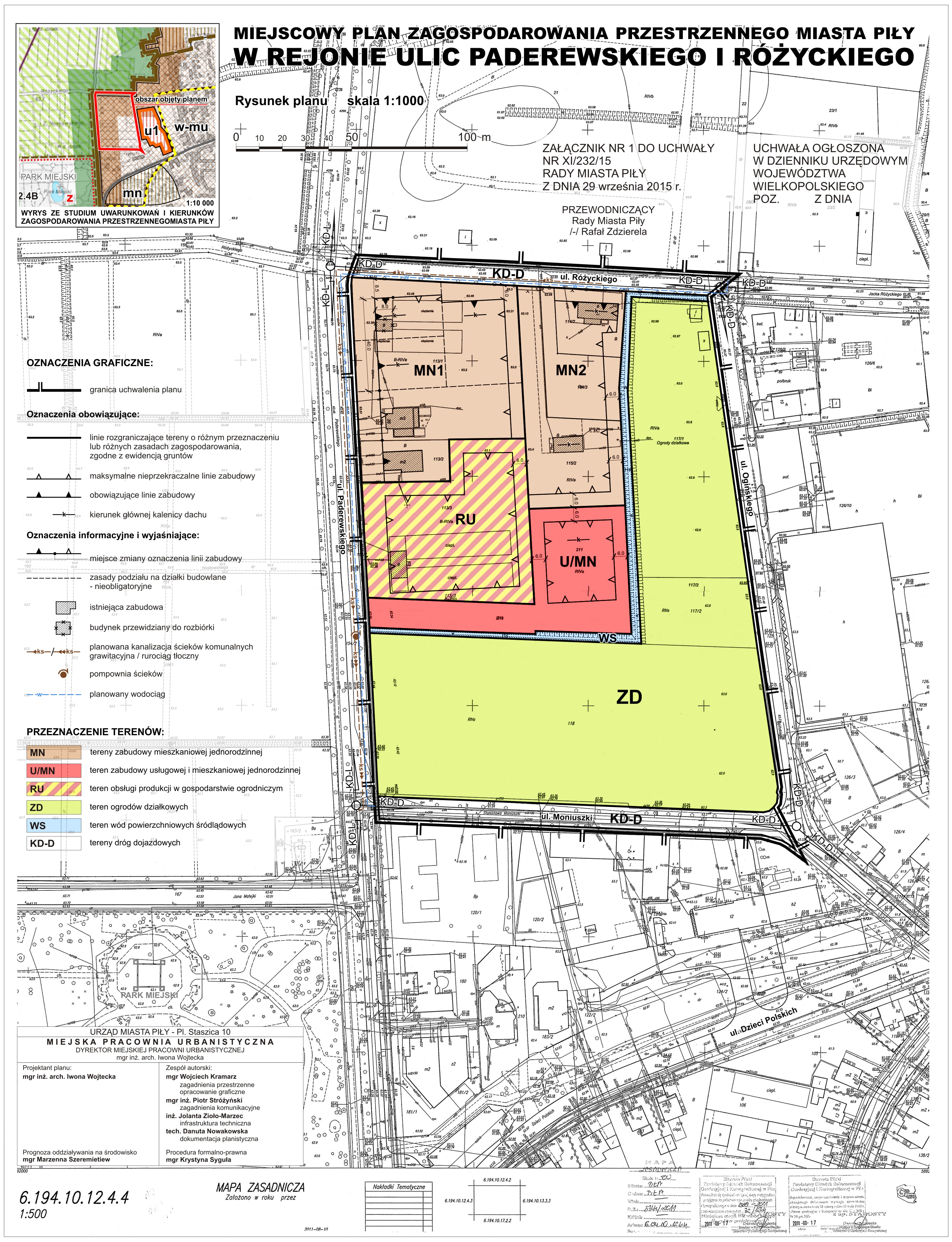 w sprawie miejscowego planu zagospodarowania przestrzennego miasta Piły w rejonie ulic Paderewskiego i Różyckiego