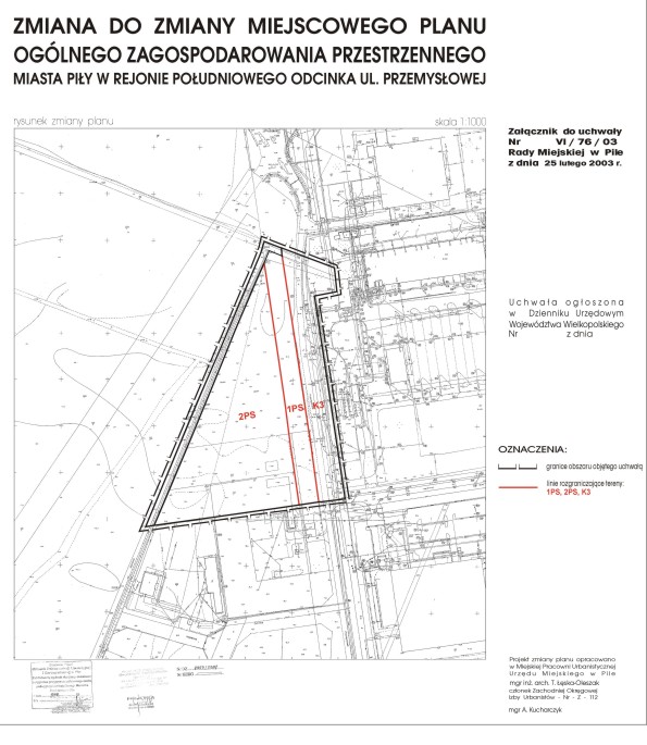 W sprawie zmiany do zmiany miejscowego planu ogólnego zagospodarowania przestrzennego miasta Piły w rejonie południowego odcinka ul. Przemysłowej